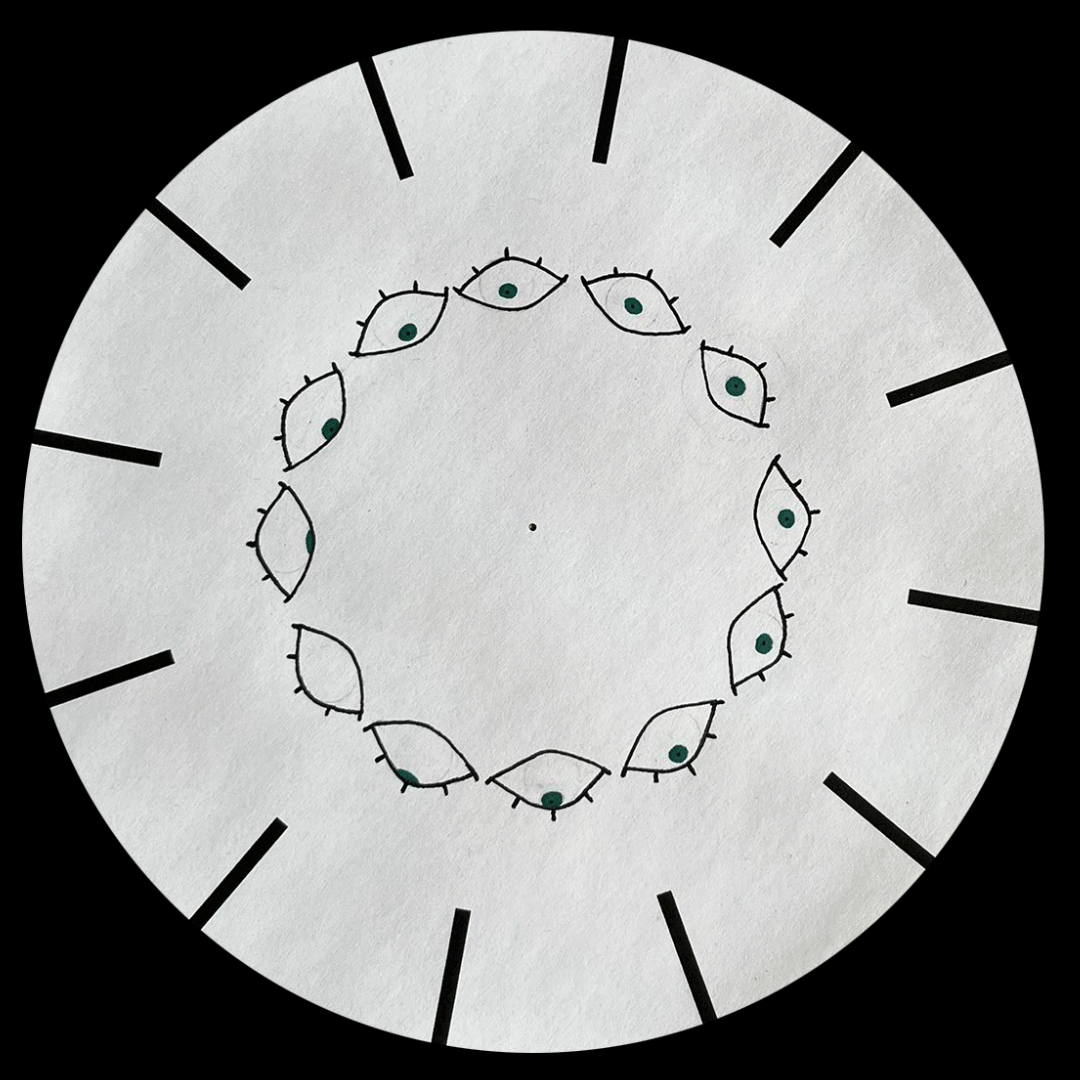 Using paper and marker, I created a phenakistoscope and the optical illusion of an eye rolling back.